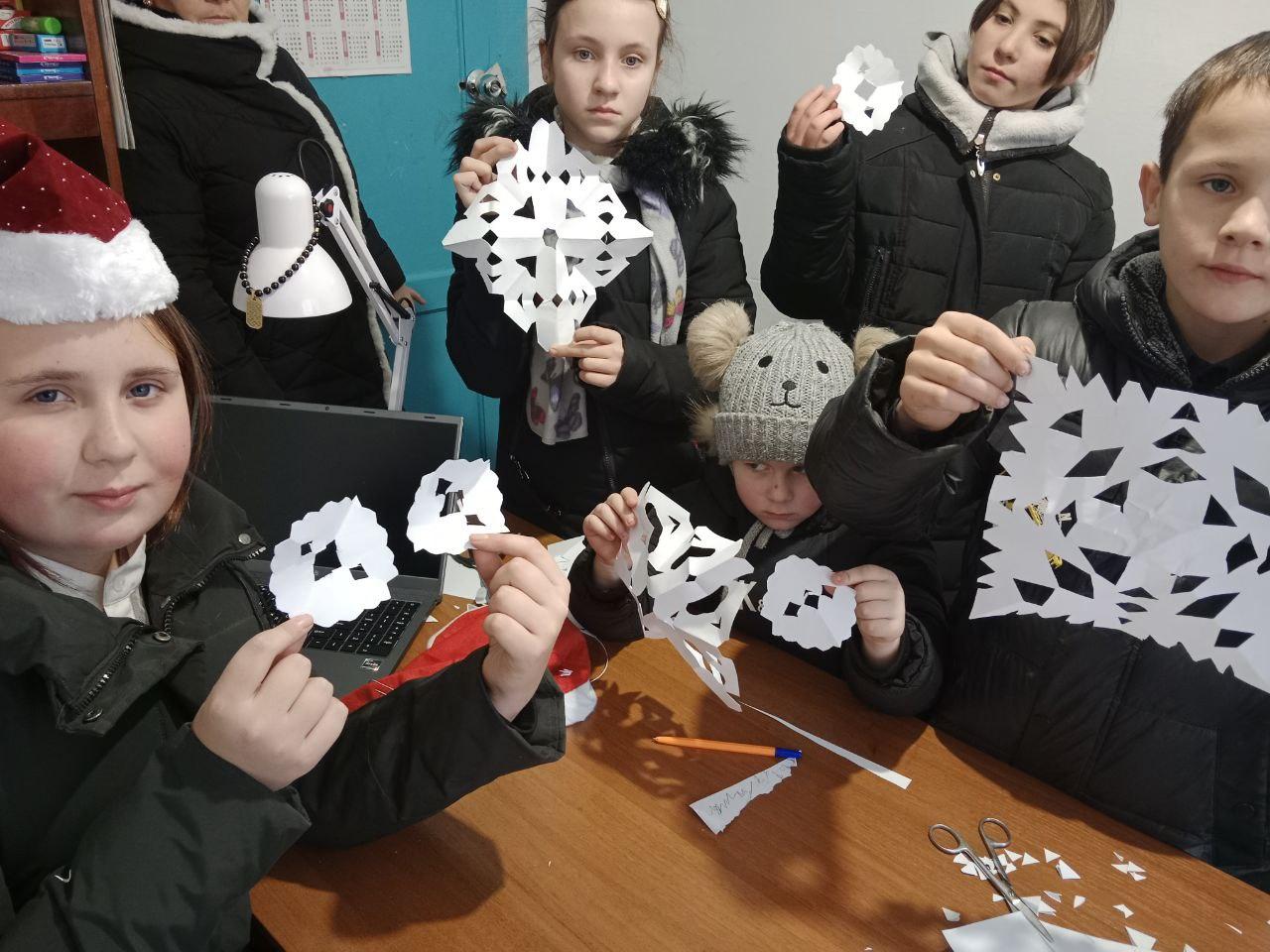 Мероприятие завершилось вырезанием снежинок из бумаги, атмосфера была весёлой и радостной. В конце мероприятия дети получили сладкие призы.