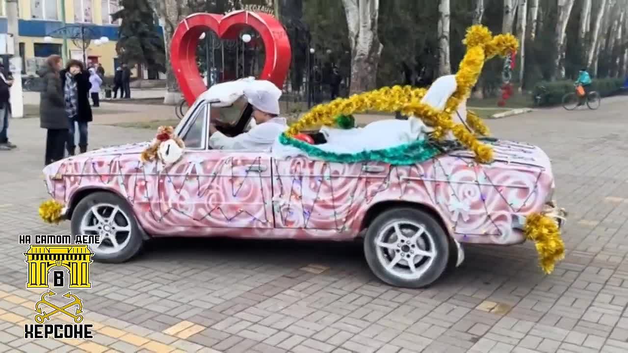 Новогоднее чудо в Скадовске? У ёлки появилась машинка, а за рулем… волк!