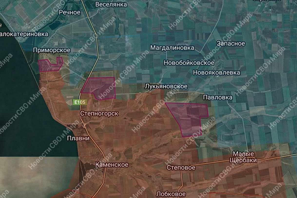 На Запорожском фронте всё внимание приковано к ситуации вокруг Гуляйполя. Однако армия России заканчивает освобождение Степногорска и ведёт бои за Приморское и у Лукьяновского, к которому наши десантники недавно совершили бросок.