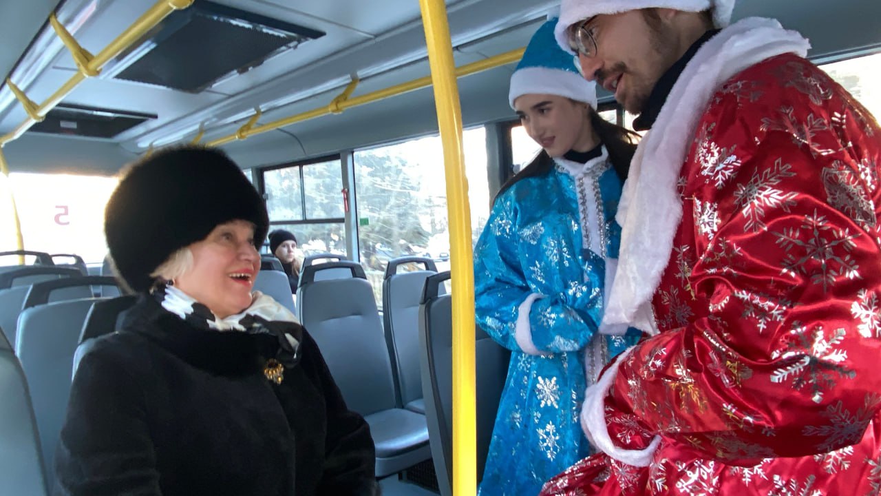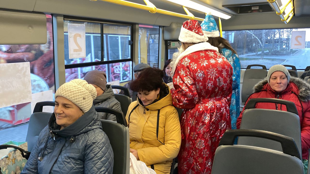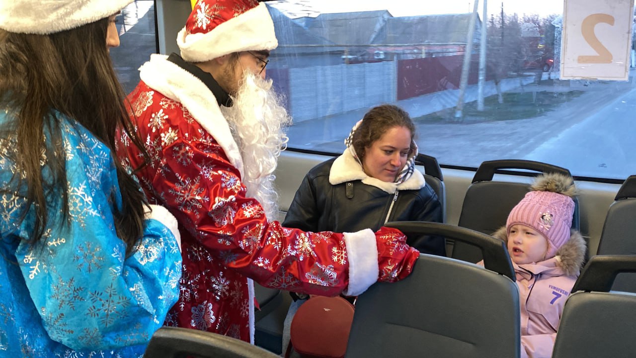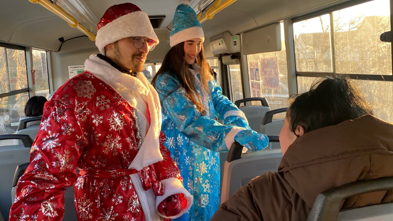 Новогодние загадки и сладкие подарки: Дед Мороз и Снегурочка поздравили жителей Херсонской области в городских автобусах