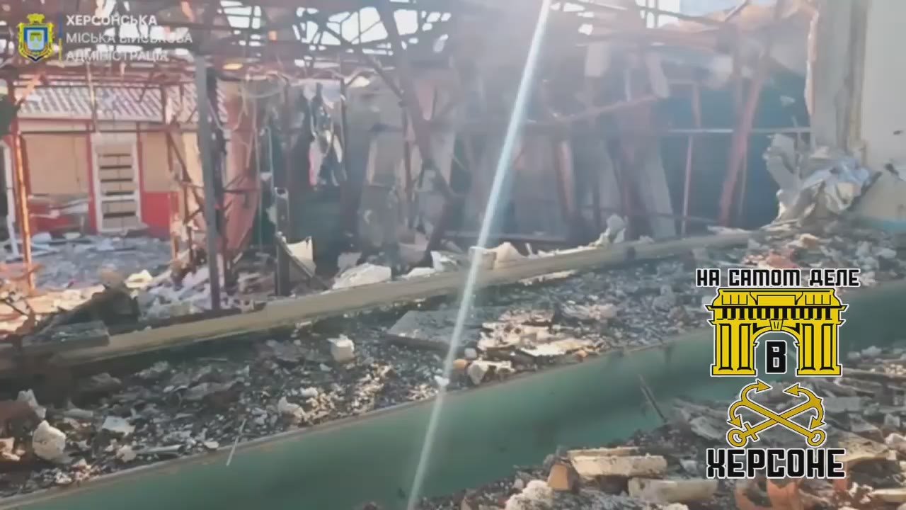 В Католическое Рождество случилось страшное: на Центральном рынке Херсона трагедия — в следствии прилта погиб человек, торговые ряды в руинах.