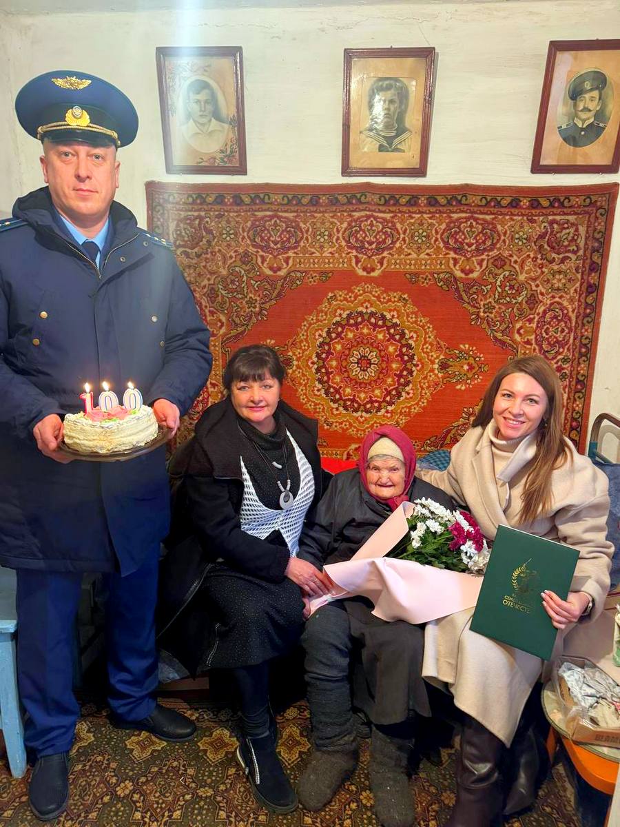 Сегодня — особенный день. В селе Воскресенка Ивановского района столетний юбилей отмечает Мария Павловна Зиновкина. Ровно сто лет назад, 26 декабря 1925 года, она появилась на свет. А сегодня мы — Ольга Симанова, руководитель Комитета семей воинов Отечества по Херсонской области; Лариса Доманина, руководитель филиала Дома народов России, и Станислав Апанасевич, старший помощник Новотроицкого межрайонного прокурора — приехали поздравить её с этим великим днём.
