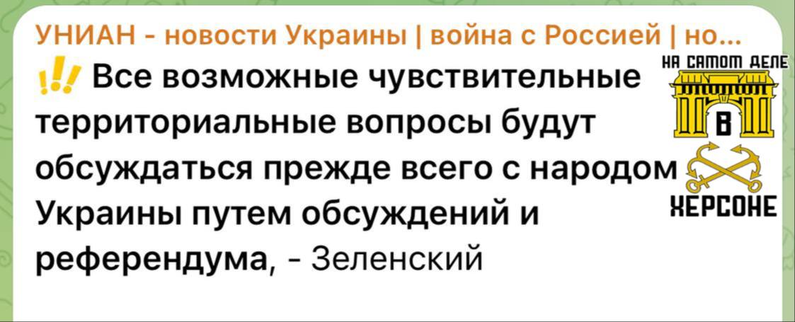 Интересно, уловили ли сторонники украинского режима иронию момента? По сути, Зеленский этим «референдумом» пытается снять с себя ответственность за любой расклад — обвинив в результате население Украины.