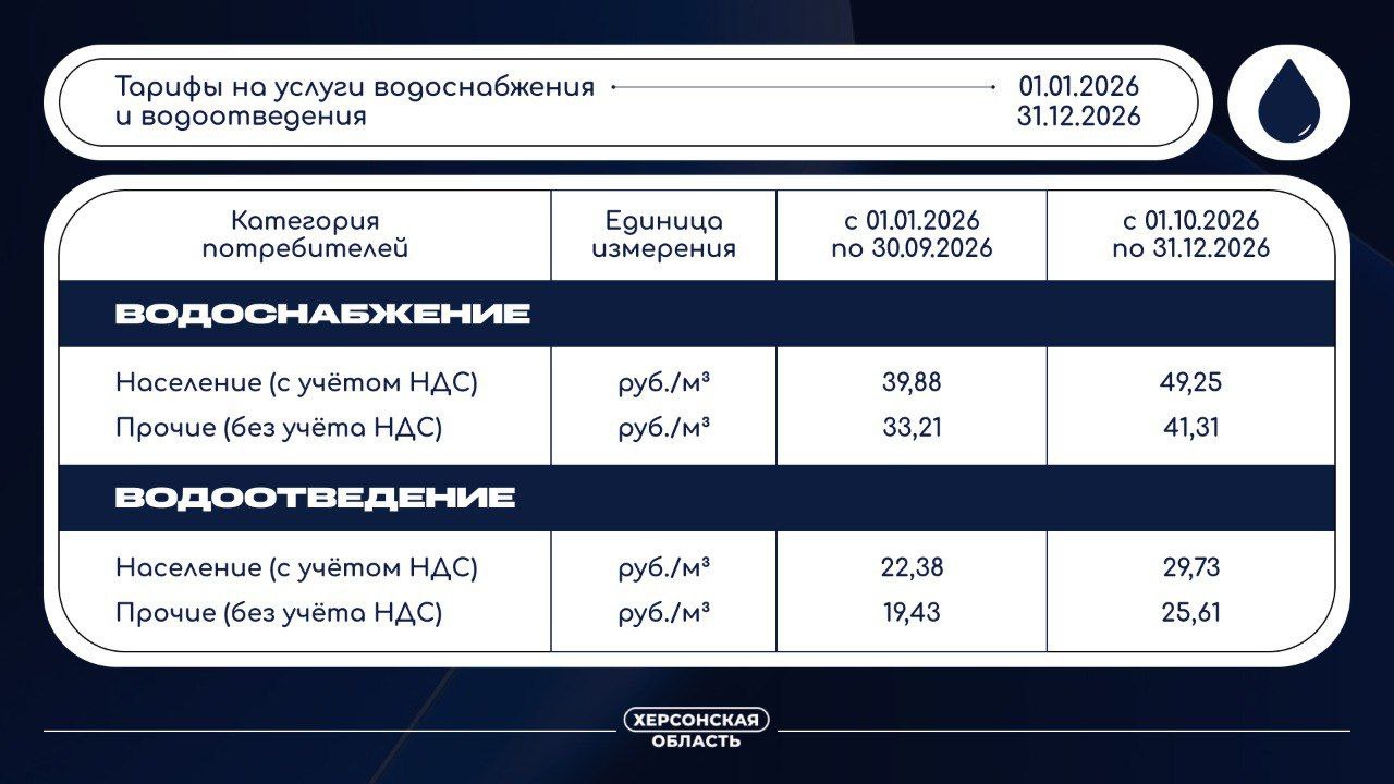 С 1 января 2026 года в Херсонской области действуют новые тарифы на воду
