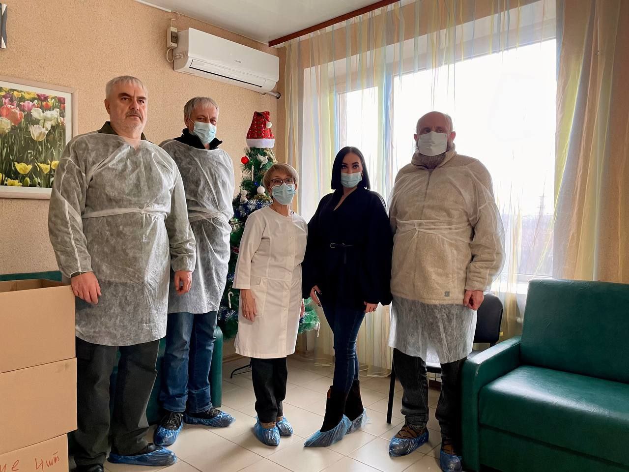 Делегация посетила педиатрическое отделение Генической больницы, где вручила детям, матерям и персоналу новогодние подарки и медицинские материалы.