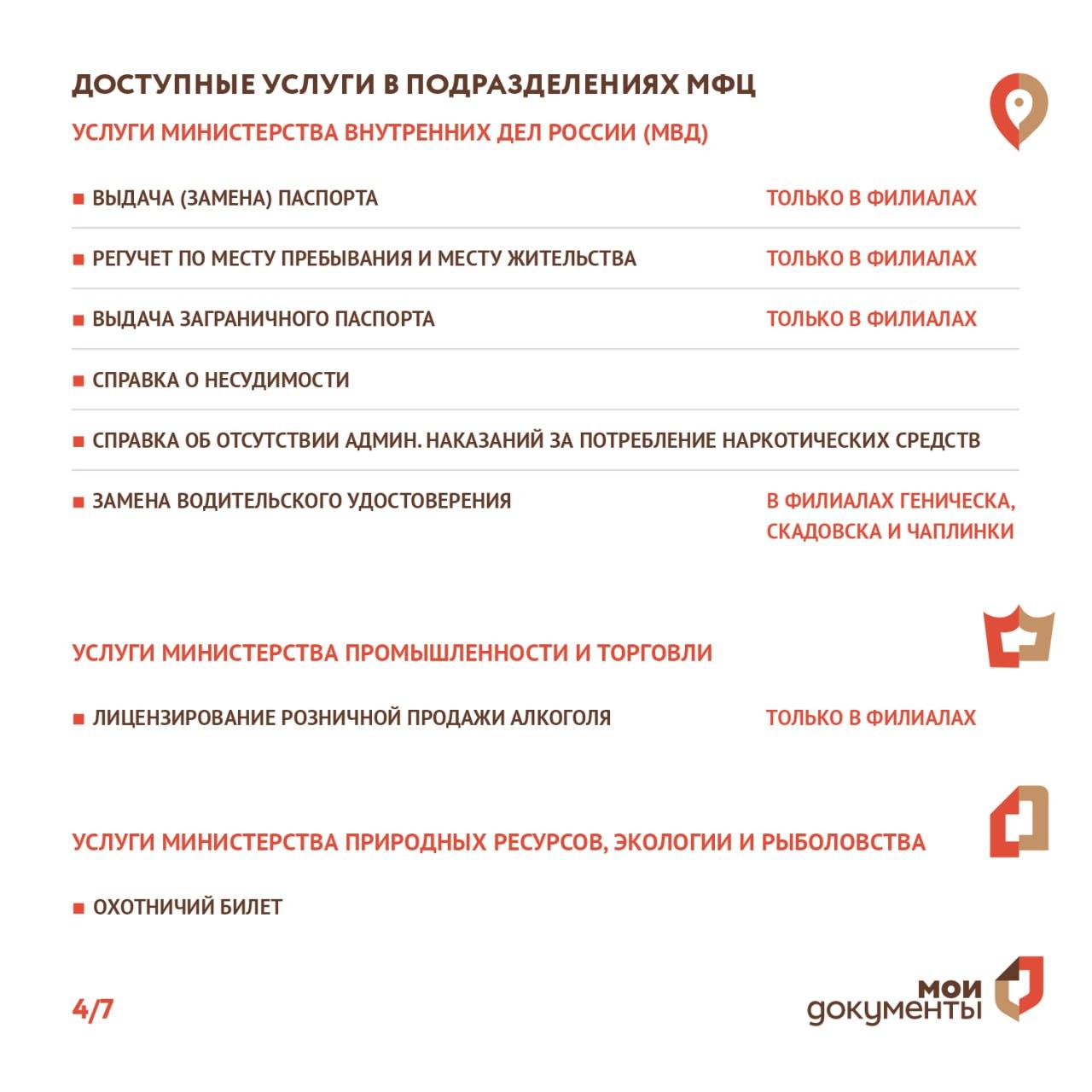 Перечень услуг, предоставляемых в МФЦ Херсонской области
