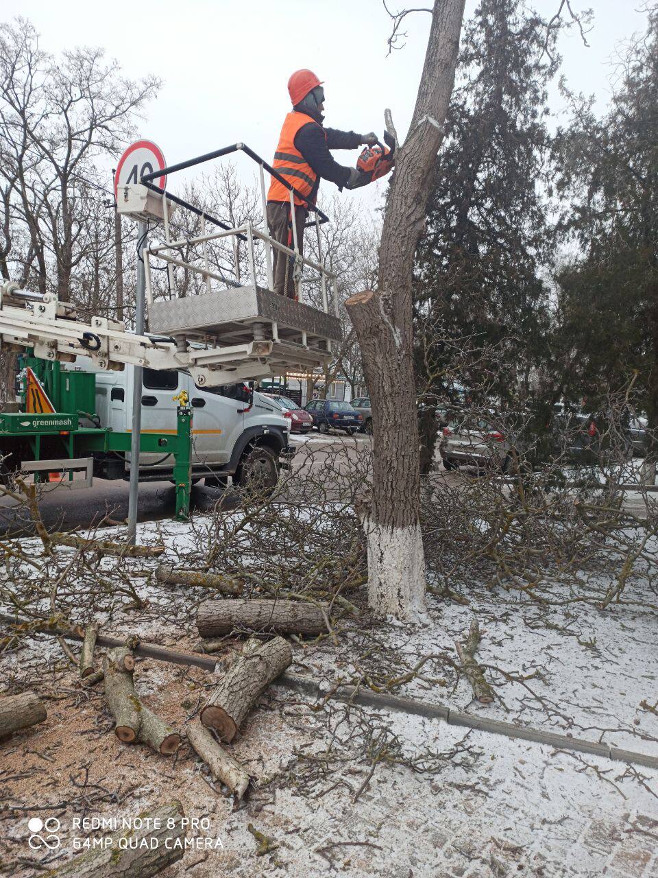Выполнена обрезка веток на ул. Береговой и ул. Центральной.