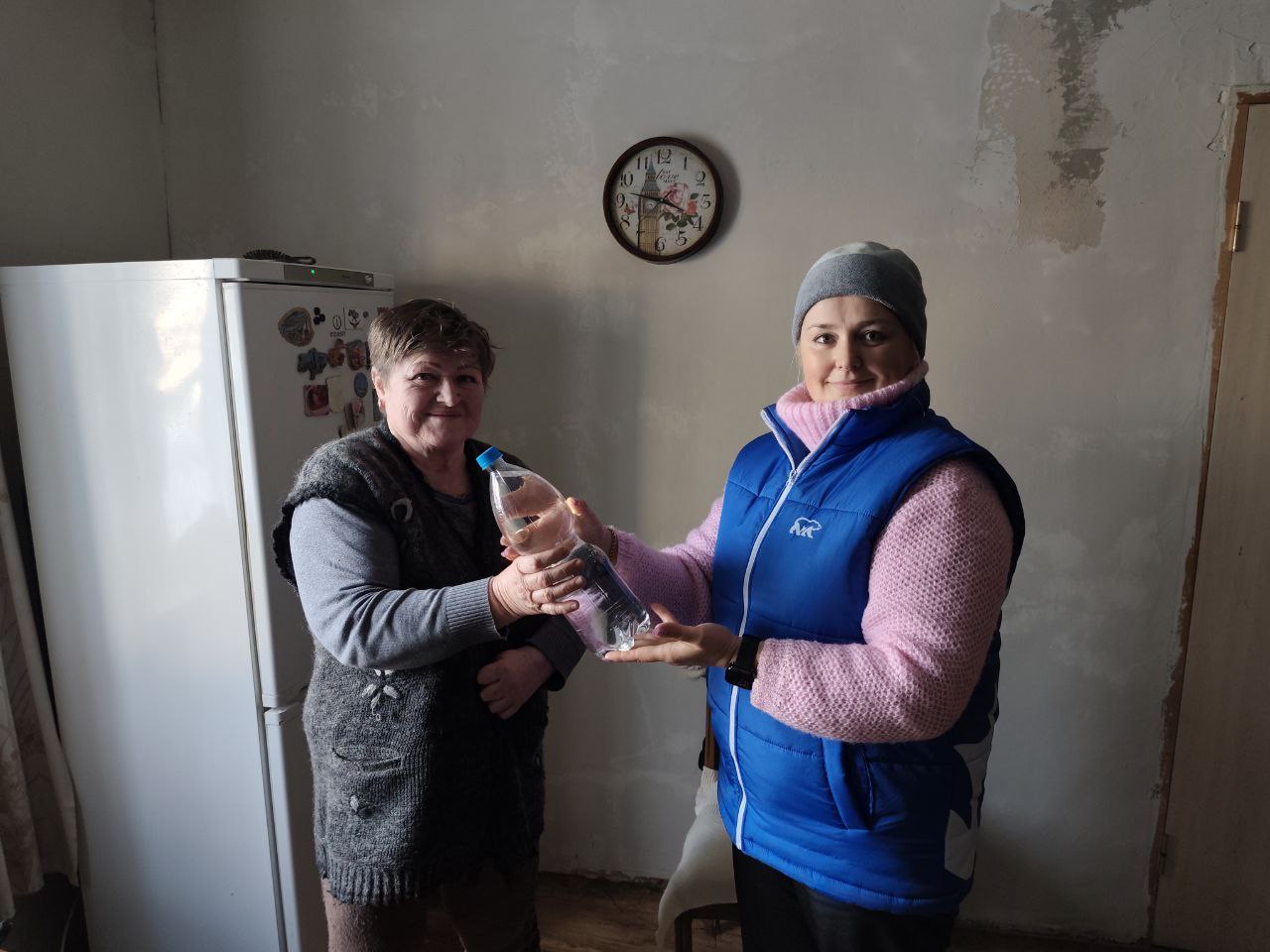 Цель акции – помочь маломобильным жителям, которые по состоянию здоровья или возрасту не могут самостоятельно посетить храм в праздничные дни. После праздничной службы активисты доставили освящённую воду одиноким пожилым людям и матерям участников специальной военной операции.