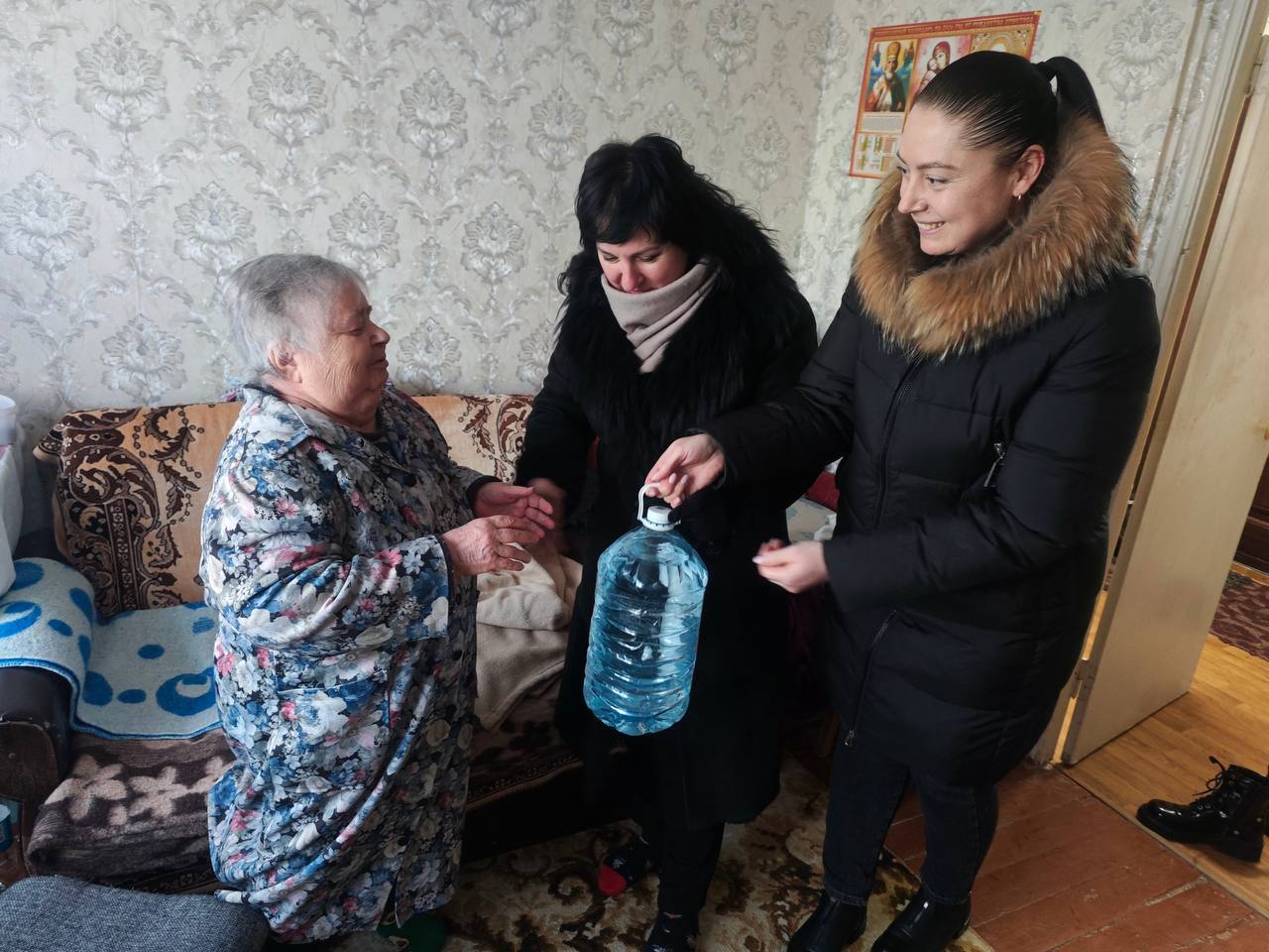 В этот же день Максимюк Неля Николаевна совместно с Фирса Екатериной Владимировной депутатом Местного Совета депутатов посетили маломобильную женщину, проживающую на территории округа. Ей была передана крещенская вода в рамках акции партии Единая Россия.