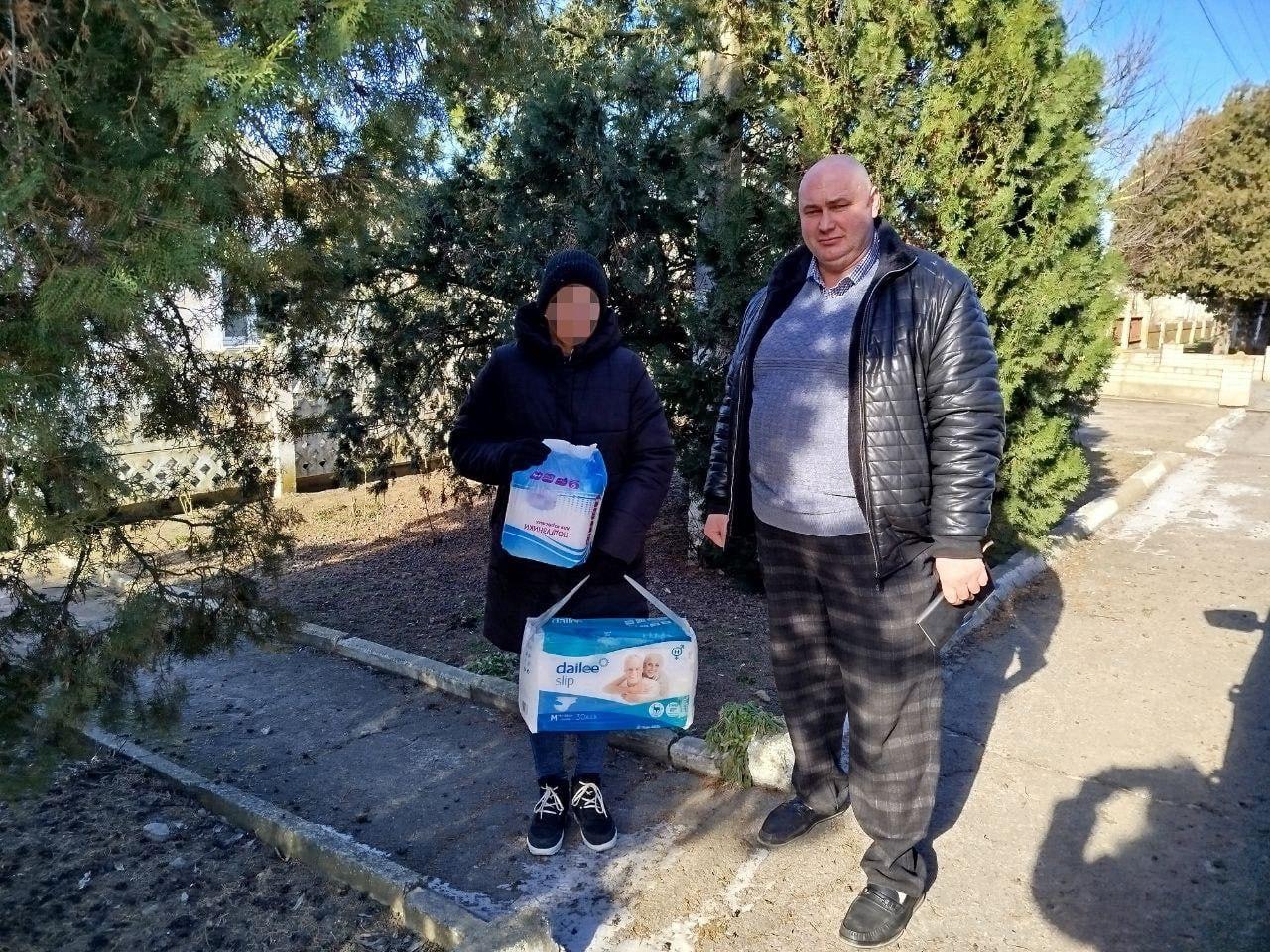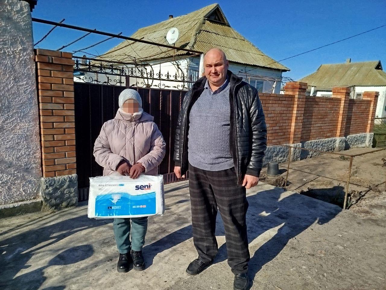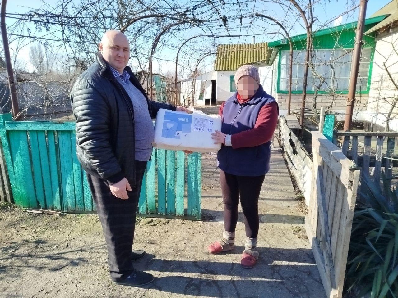 По поручению секретаря Скадовского местного отделения партии Единая Россия и главы администрации округа Александра Дудки на территории ТУ Лазурное проведена работа по выявлению нужд жителей с ограниченными возможностями. Сотрудники ТУ провели подомовой обход и узнали о потребностях каждого, после чего начальник ТУ Лазурное Денис Бондарев доставил людям необходимые средства реабилитации: памперсы для взрослых и инвалидное кресло для одной семьи.