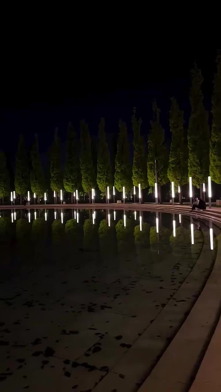 Подсветка деревьев, архитектурных форм и водоёмов создаёт завораживающие отражения и тени, совершенно меняя восприятие пространства.