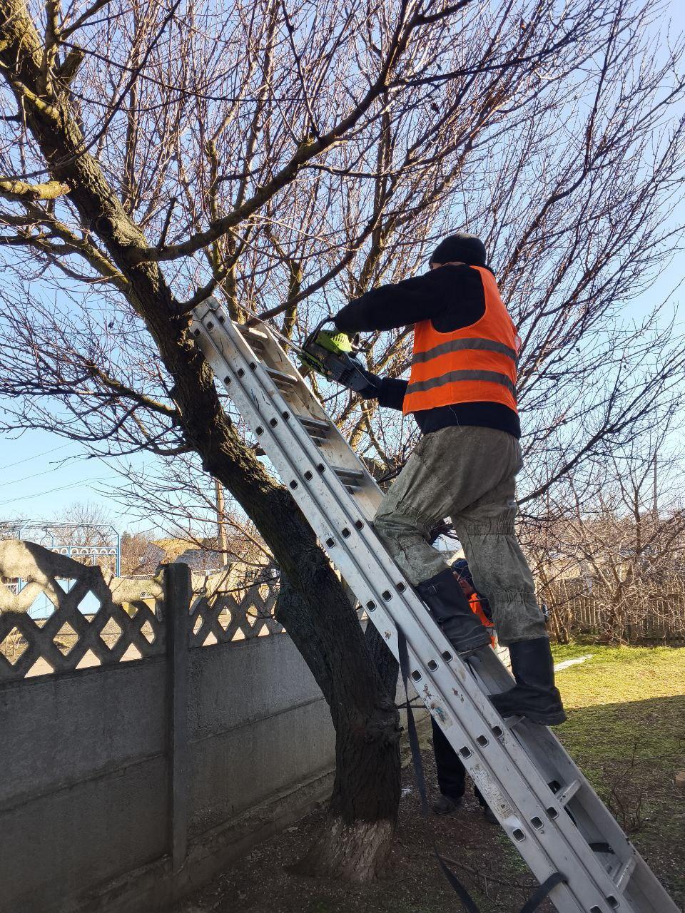Спил и обрезка аварийных деревьев на ул. Лободы.