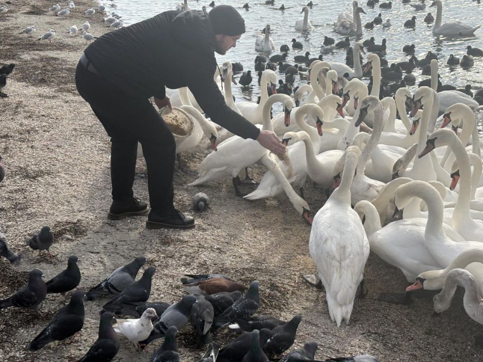 На центральном пляже Скадовска сотрудники природного парка «Джарылгач» совместно с неравнодушными гражданами провели подкормку водоплавающих птиц. Акция направлена на поддержку пернатых жителей региона в зимний период, когда естественные кормовые ресурсы ограничены.