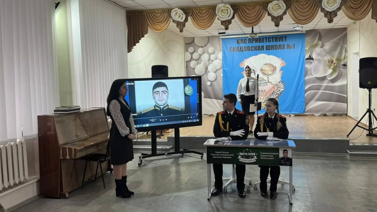 В Скадовской школе №1 состоялось торжественное мероприятие в рамках всероссийского проекта «Парта Героя». Памятная парта посвящена старшему лейтенанту Нурмагомеду Гаджимагомедову, удостоенному звания Героя России посмертно.