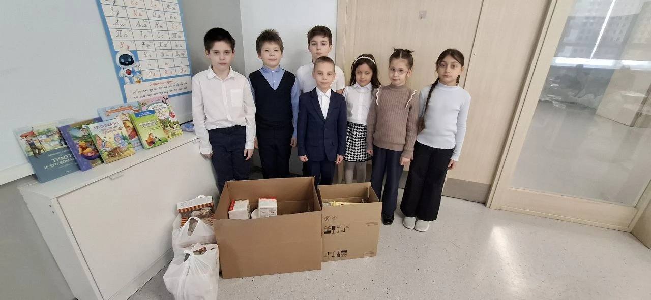 Ребята написали трогательные письма с пожеланиями здоровья и удачи для бойцов, находящихся вдали от дома, и собрали гуманитарную помощь: тёплые носки, чай, сладости.