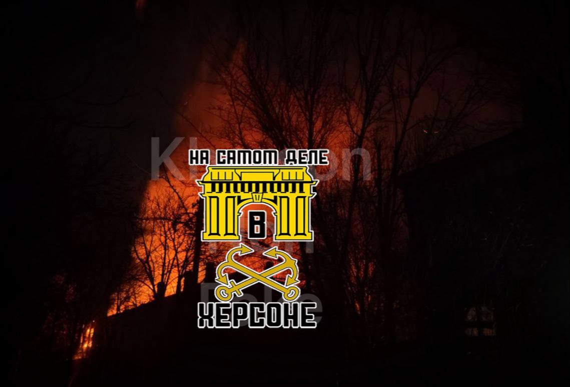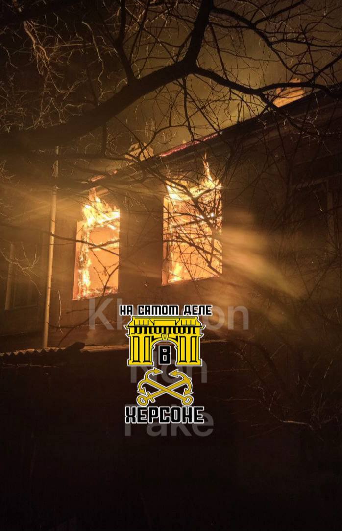 Ночной пожар в Днепровском районе Херсона. Кажется, либо Стеклотара, либо Восточный.