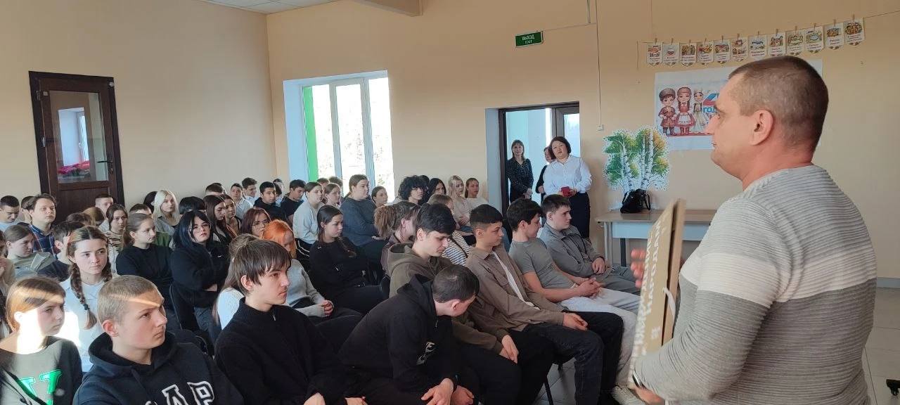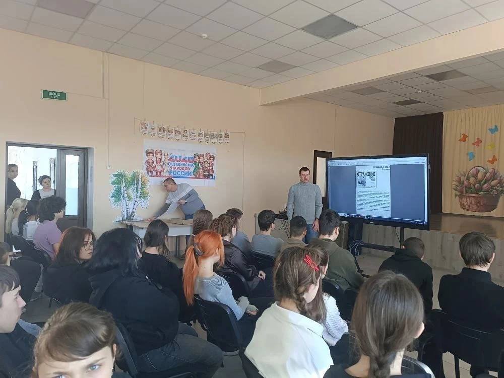 Преподаватели истории ХГПУ Сергей Вишневский и Андрей Гуменюк привезли мобильную фотовыставку «Отражение 1941–1945» в Каланчакскую школу № 1.