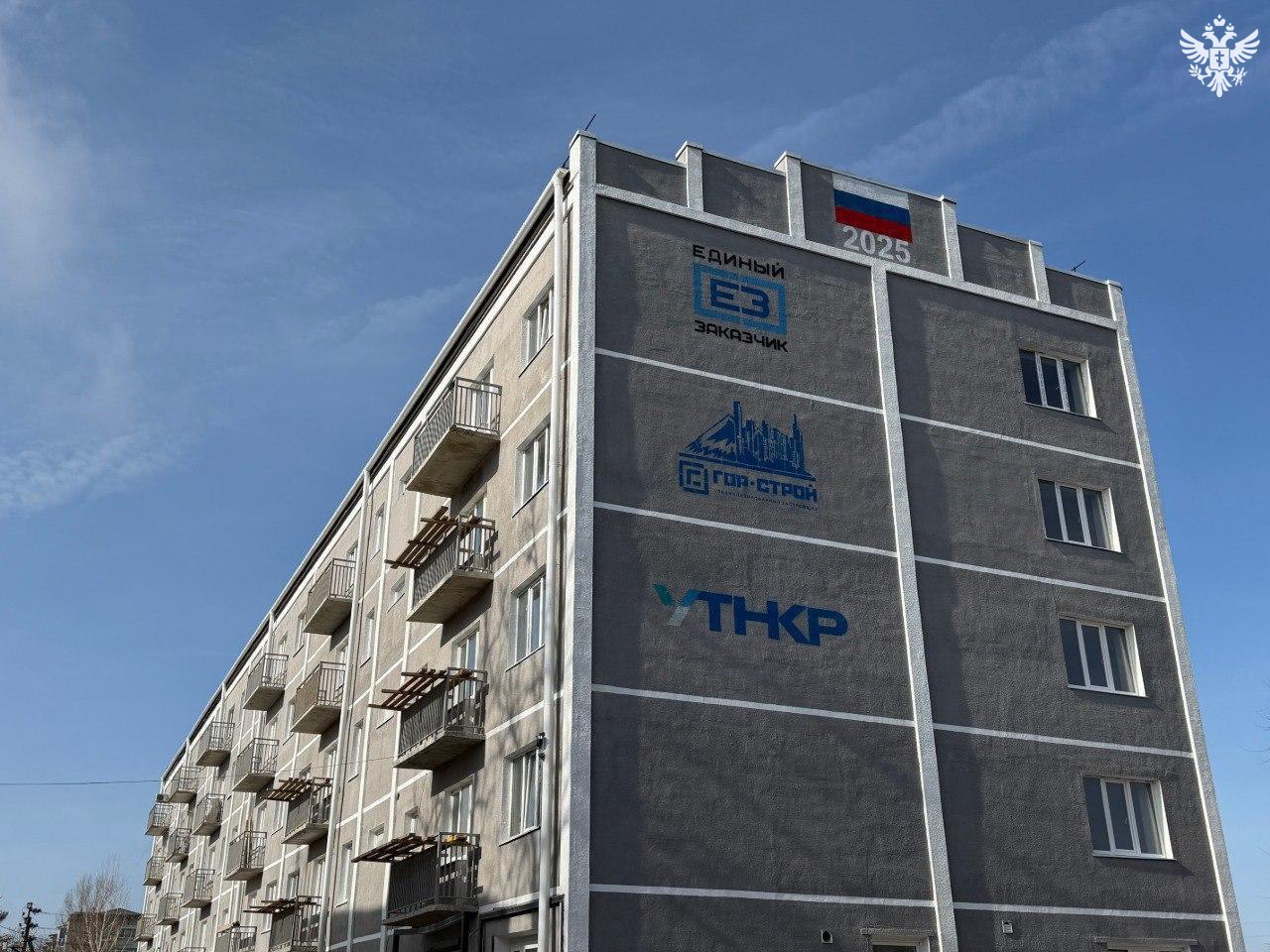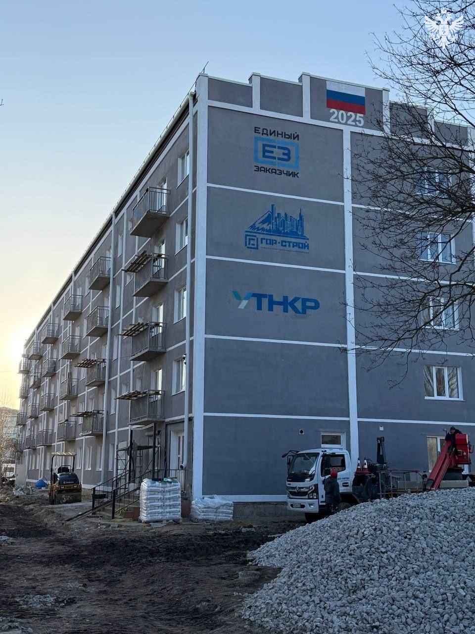 В центре посёлка подходит к концу восстановление жилого дома. Здание имело разрушенный верхний этаж и повреждённую кровлю. Работы стартовали в августе 2025 года.