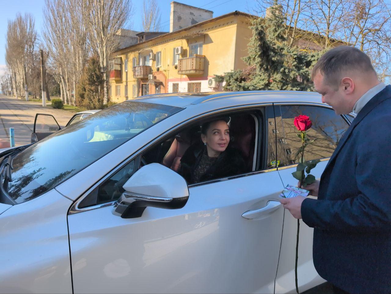 В преддверии Международного женского дня заместители главы администрации Скадовского муниципального округа присоединились к праздничной акции «Автоледи». На улицах города они поздравляли представительниц прекрасного пола, находящихся за рулём, с наступающим праздником весны.