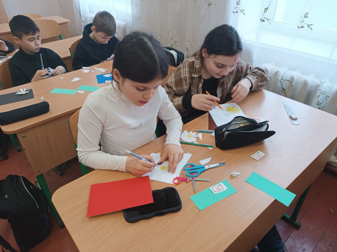 В преддверии самого весеннего, нежного и женственного праздника 8 марта обучающиеся 5-А класса на внеурочном занятии «Умелые ручки» изготовили поздравительные открытки своим мамам.