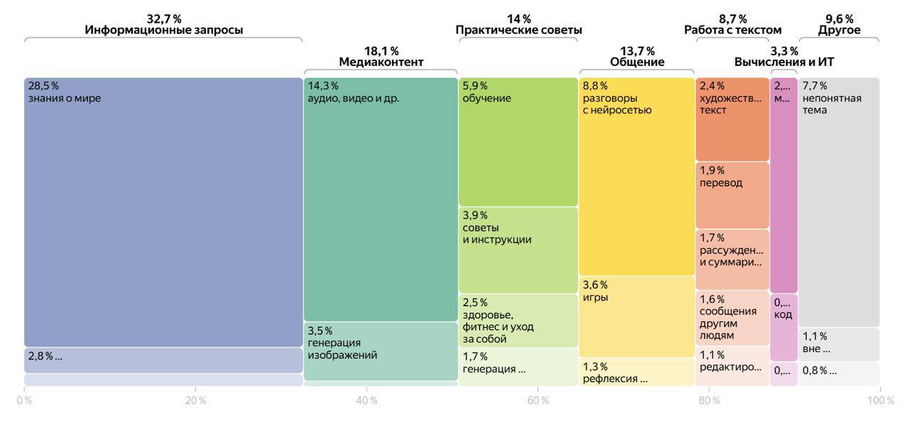 Медиа (18%) — генерация картинок и поиск видео;