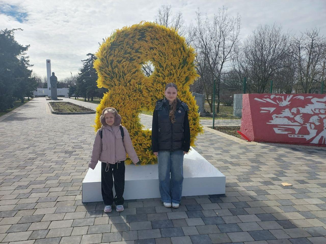В преддверии Международного женского дня в Геническом сквере Воинской Славы установлена праздничная инсталляция – композиция в виде цифры «8», украшенная ветками мимозы.