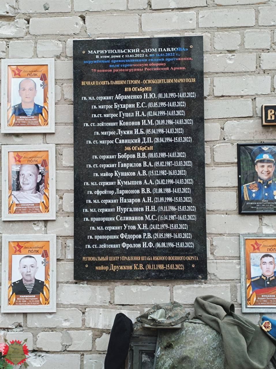 Памятный народный мемориал на месте боя разведчиков 346-й ОБрСпН и морпехов 810-й ОБрМП в Мариуполе. 75 человек, 4 дня.