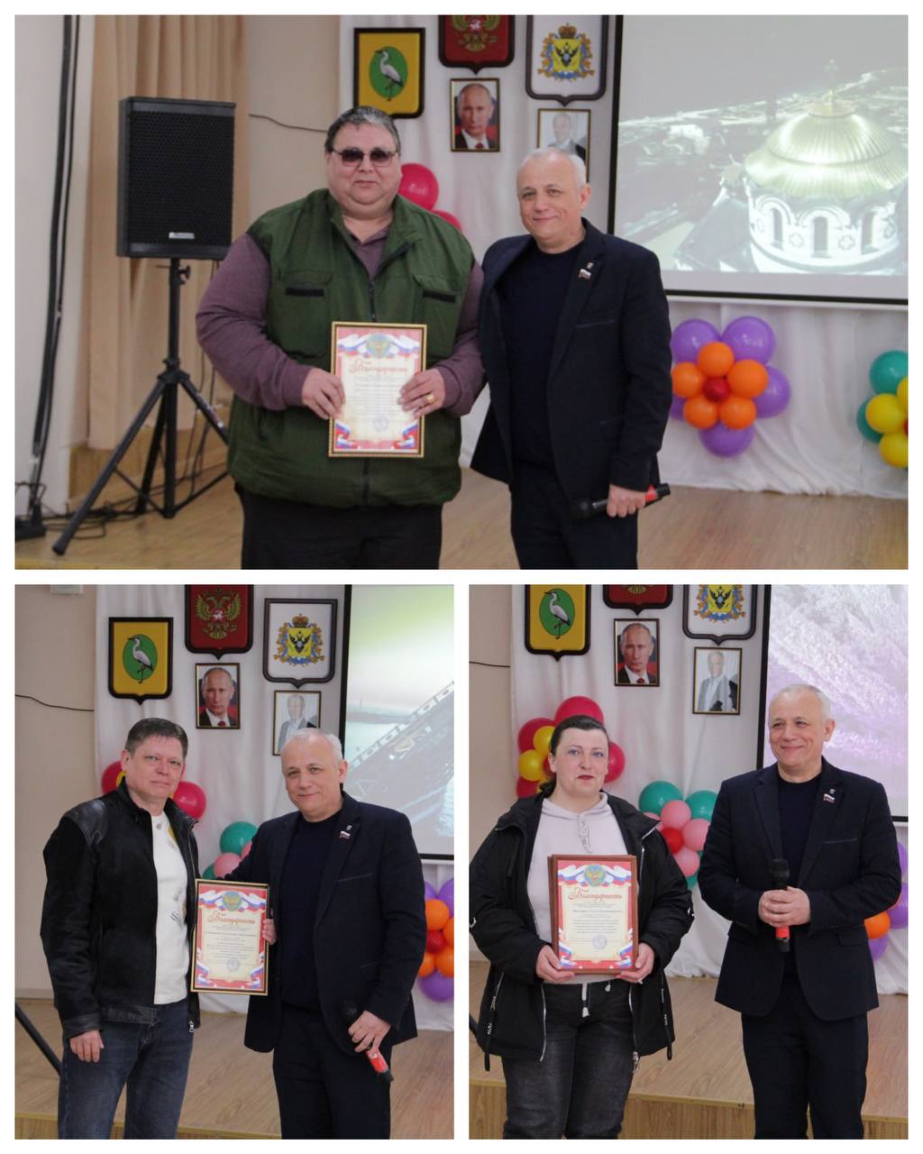С поздравительным словом выступили глава Чаплинского муниципального округа, секретарь местного отделения партии "Единая Россия" Лилия Пуляева и председатель Совета депутатов Чаплинского муниципального округа Владимир Домбровский.