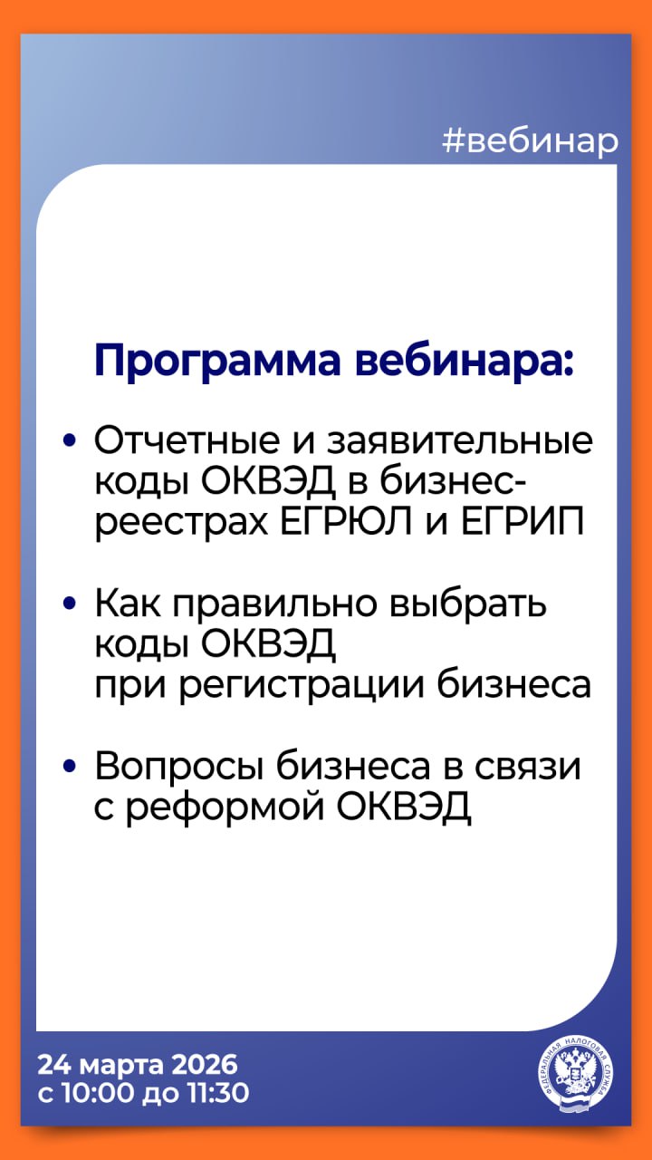 ФНС России проведет вебинар «Коды ОКВЭД в ЕГРЮЛ и ЕГРИП»