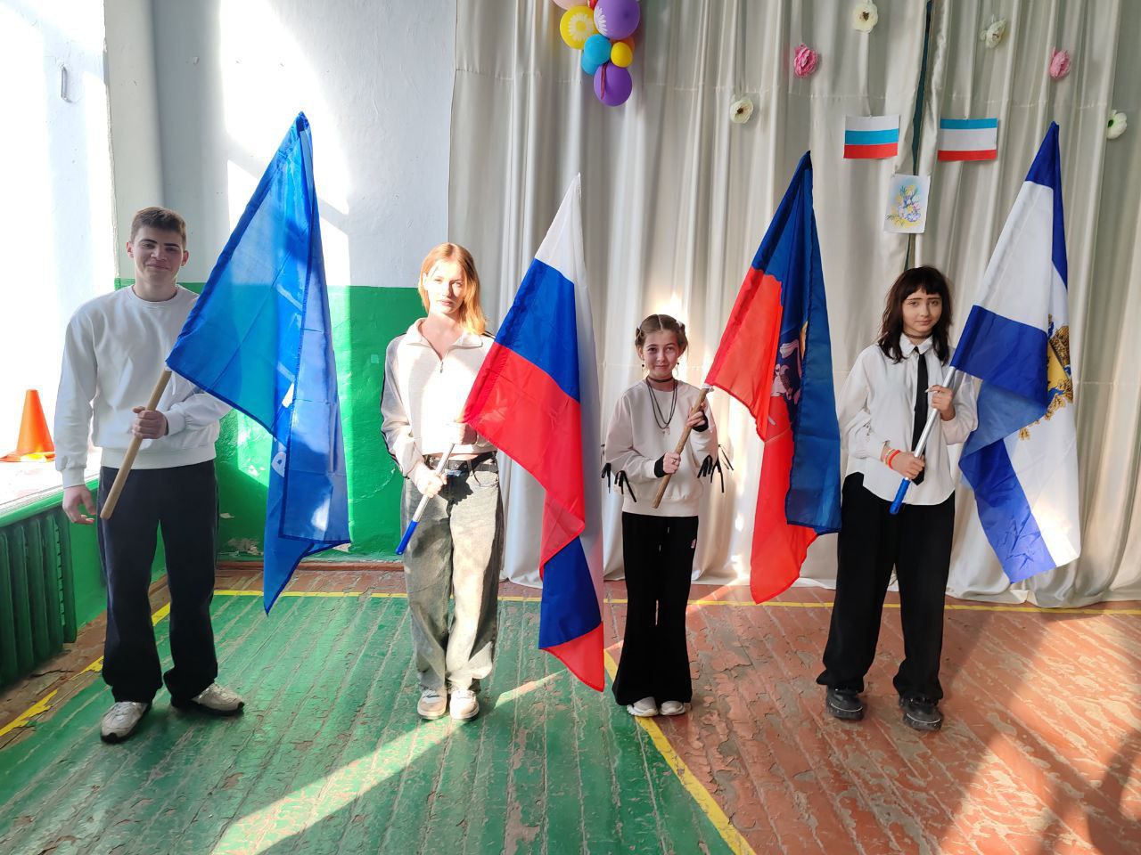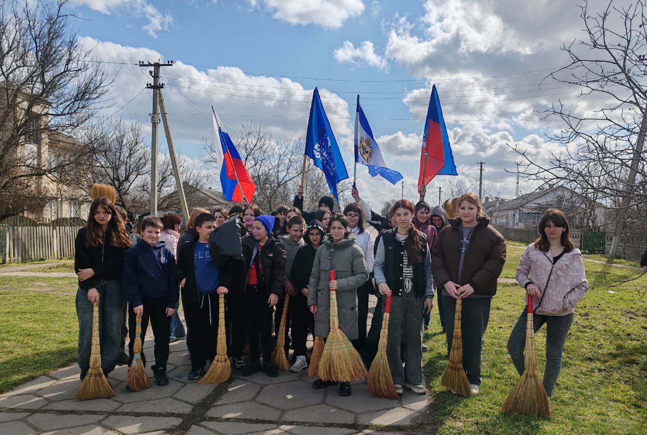 В честь Дня воссоединения Крыма и Севастополя с Россией ученики и педагоги Красноперекопской школы провели уборку на территории учреждения и прилегающих участках.