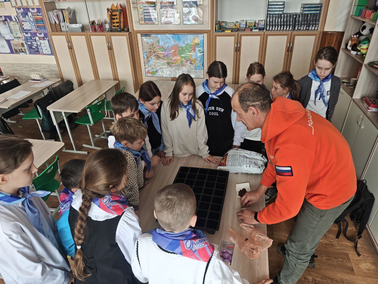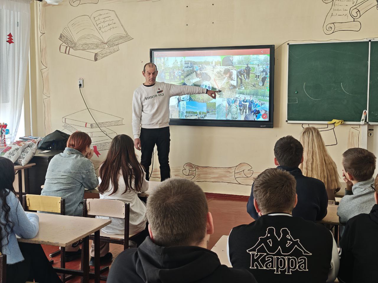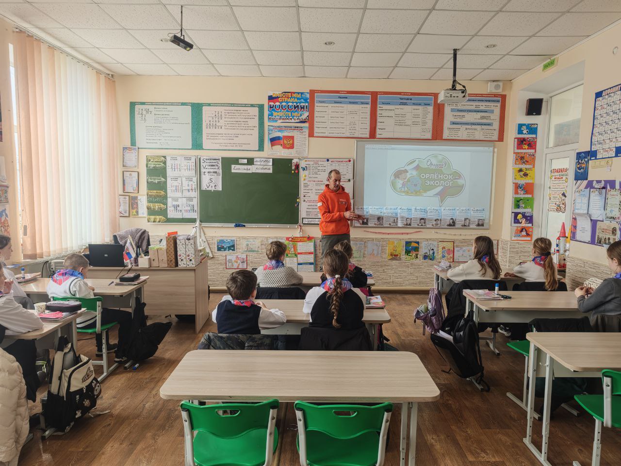 Специалист «Движения первых» Федор Бирюк вместе с ведущим специалистом Скадовского лесоохотничьего хозяйства Андреем Витулиным не только рассказали ученикам школ о возможности подготовки проектов экологической направленности, но и помогли их оформлять.