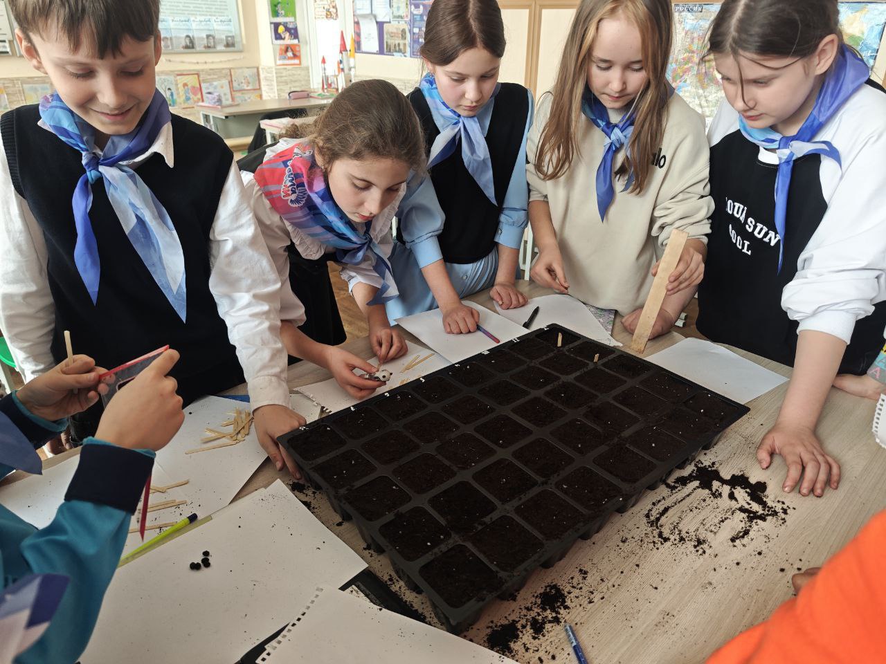 В ходе мероприятий школьники также принимали участие в экологических викторинах и практической работе. Они вместе с ведущим специалистом Скадовского лесоохотничьего хозяйства высадили в специализированные лотки семена цветов, рассада которых в дальнейшем будет высажена на школьных клумбах.