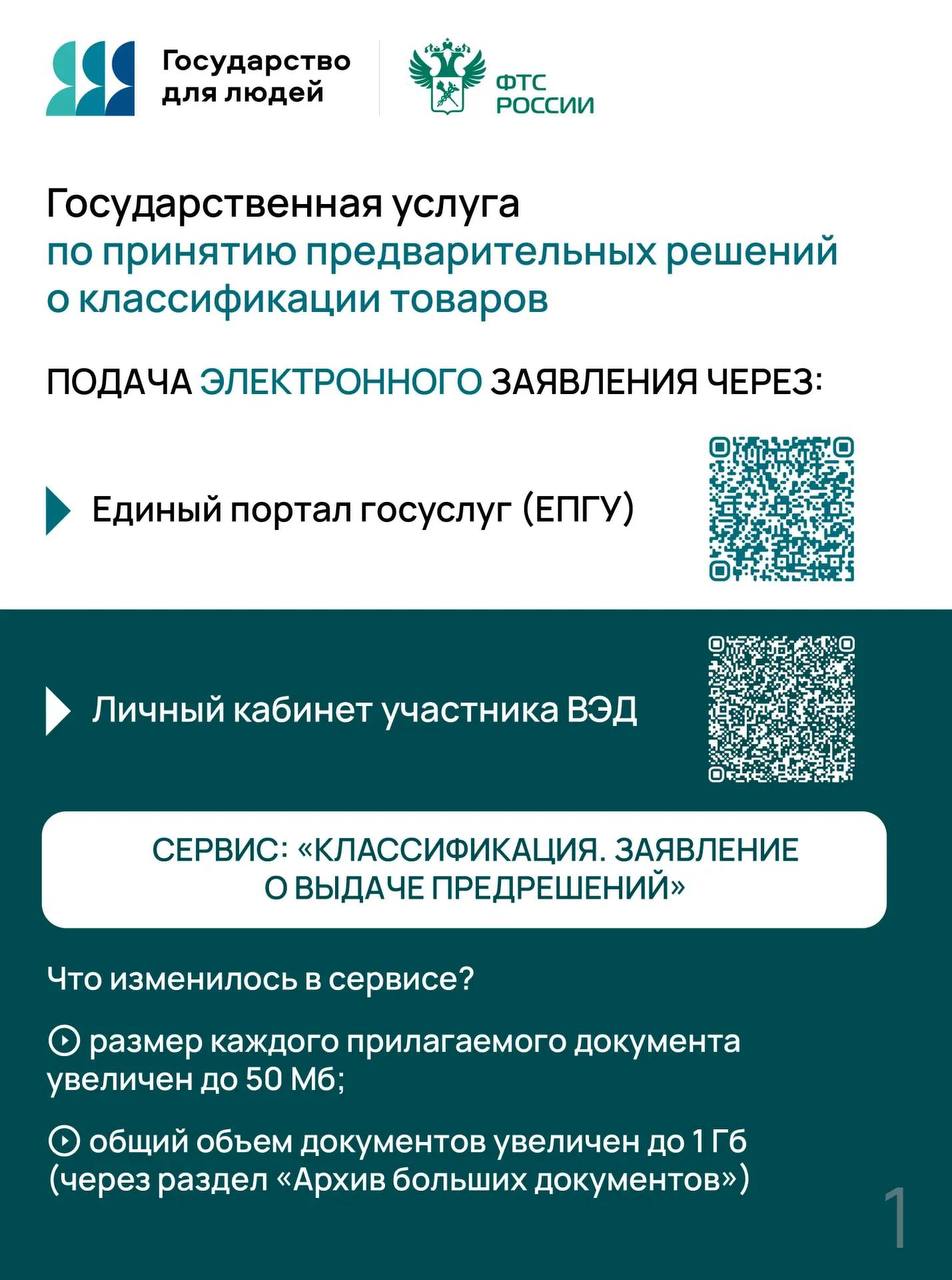 ФТС напоминает, что с 27 ноября 2025 г. подать заявление о предоставлении госуслуги по принятию предварительных решений о классификации товаров можно только в электронной форме. Сделать это возможно через портал госуслуг или Личный кабинет участника ВЭД на официальном сайте ФТС России.