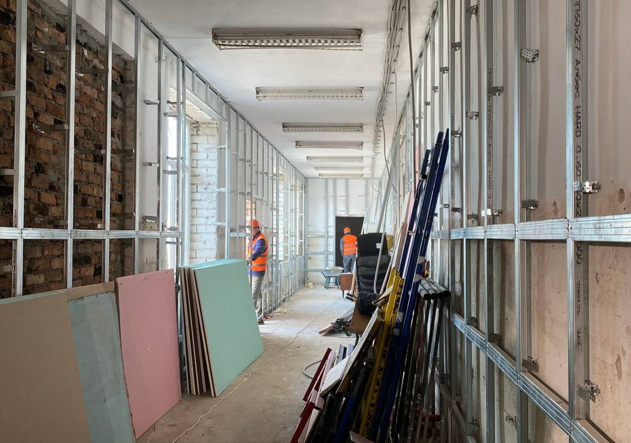 За месяц обновили кровлю, сейчас идет внутренняя отделка и замена отопления. Учебный процесс на время ремонта организован без перерыва: начальная школа переведена в соседний детский сад, а старшие классы обучаются онлайн.