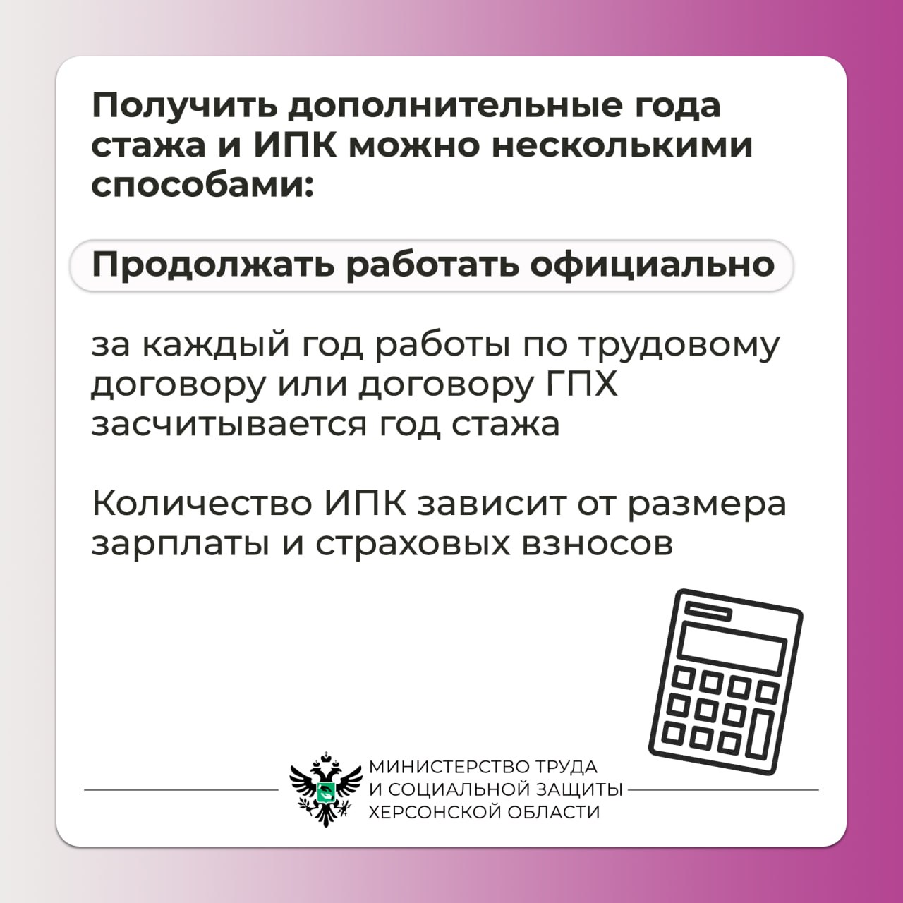 Необходимо узнать сколько не хватает индивидуального пенсионного коэффициента (ИПК) и лет стажа для выхода на страховую пенсии. Получить недостающие года стажа и ИПК можно следующими способами: