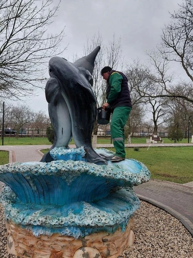- подготовка скульптур «дельфинов» к покраске.