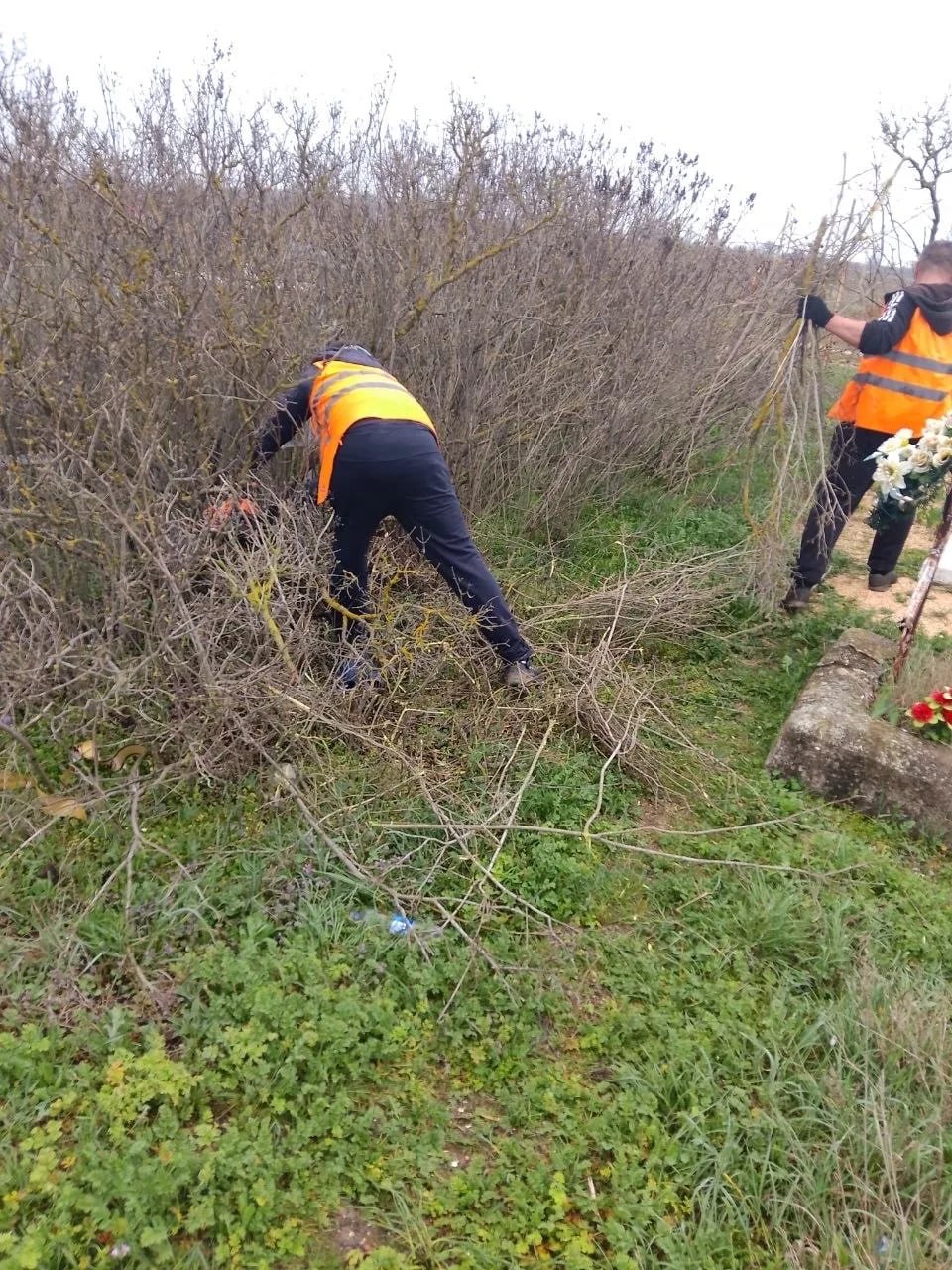 уборка мусора и обрезка порослей на территории кладбища;