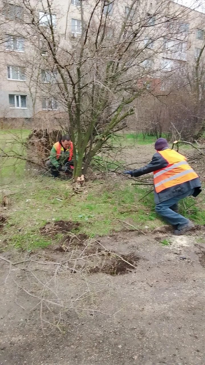 пгт. Новоалексеевка: проведена санитарная уборка, обрезка дикой поросли и спил аварийных деревьев на ул. Леси Украинки, 62. Вывезено 8 м мусора.
