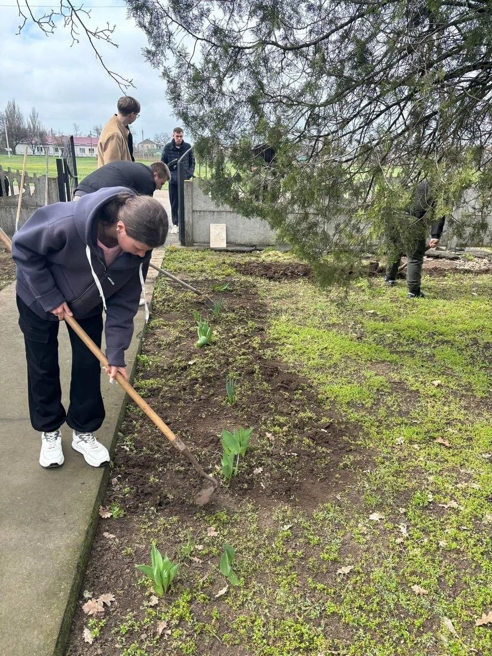 Ученики местной школы приняли участие в субботнике, в ходе которого облагородили прилегающую к монументу территорию. За несколько часов ребята убрали мусор, протерли памятные плиты, подмели территорию мемориала и очистили клумбы от травы.