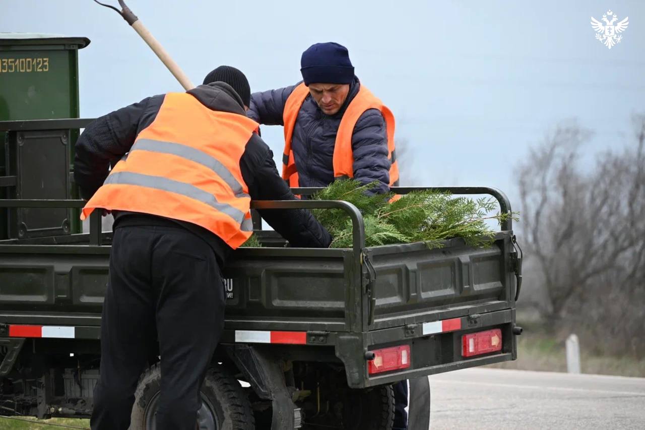 Двадцать туй высадили у мемориала и могилы Неизвестного солдата в Геническом округе