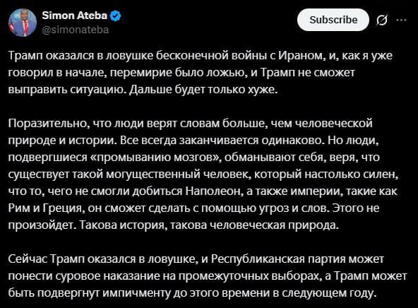 По его словам, Трамп оказался в ловушке бесконечной войны с Ираном: