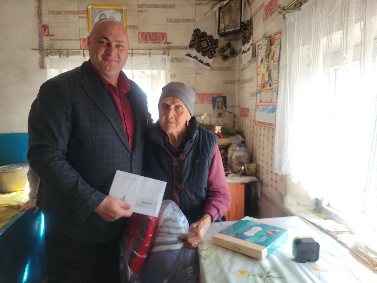Начальник ТУ «Лазурное» Денис Бондарев поздравил с юбилеем жительницу села Владимировка Татьяну Никаноровну Ткаченко, которой исполнилось 93 года.