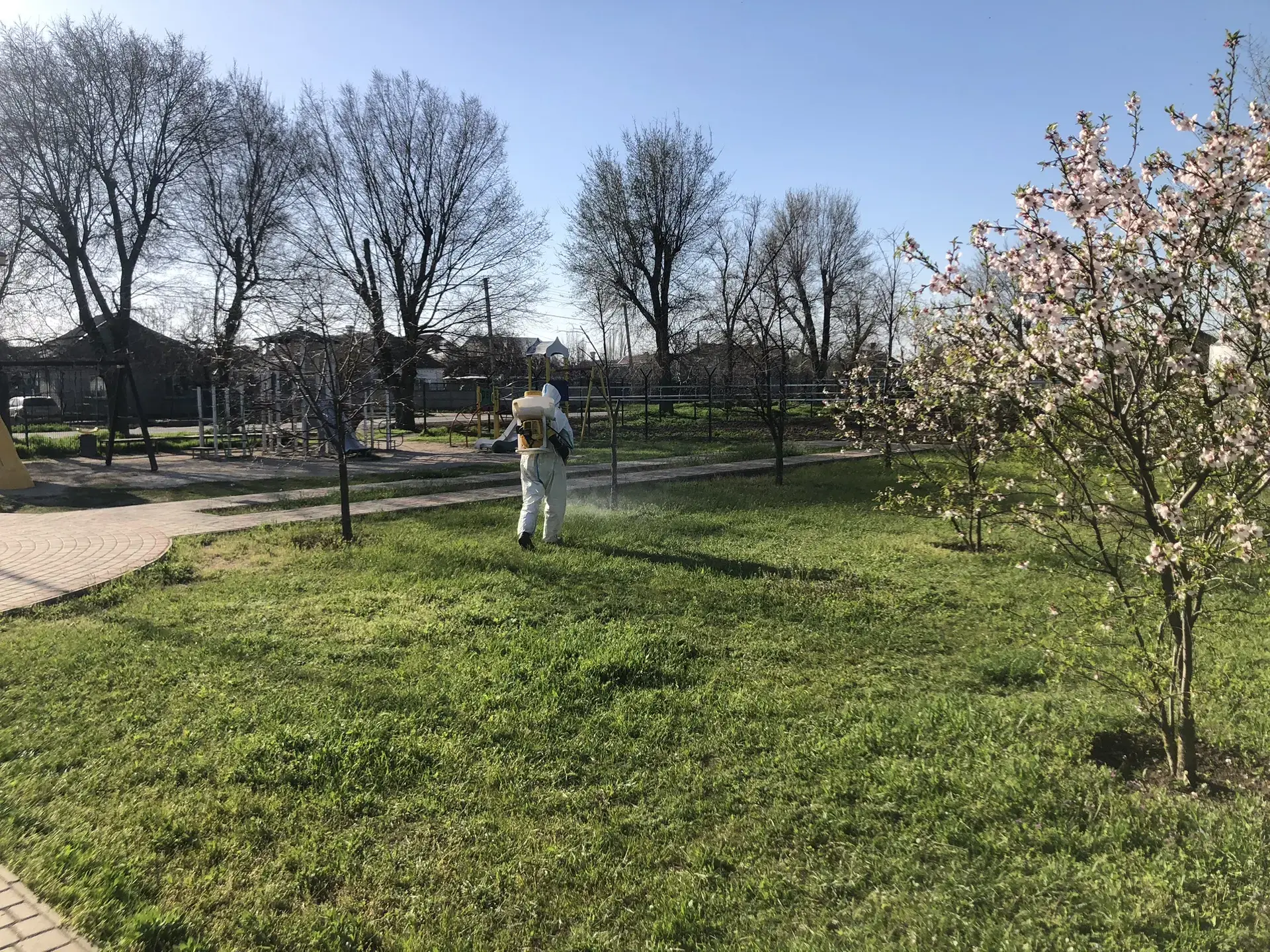 С наступлением тепла просыпается не только природа, но и её опасные обитатели – клещи. Чтобы прогулки в любимых парках были безопасными, 15 апреля в Геническе работники МКУ «Азовкоммунсервис» провели акарицидную обработку.
