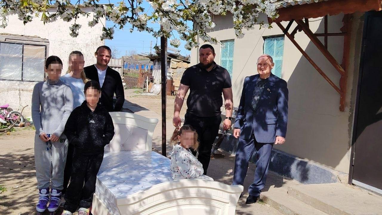 Депутаты от партии «Единая Россия» Татьяна Бурчин, Владимир Червяков и Сергей Евсеев совместно с сотрудниками администрации и начальником ТУ «Шевченко» Александром Фёдоровым передали кровати и тумбочки семьям, оказавшимся в тяжёлой жизненной ситуации на территории Скадовского муниципального округа от Кабардино-Балкарской Республики.
