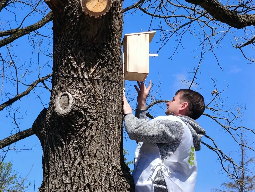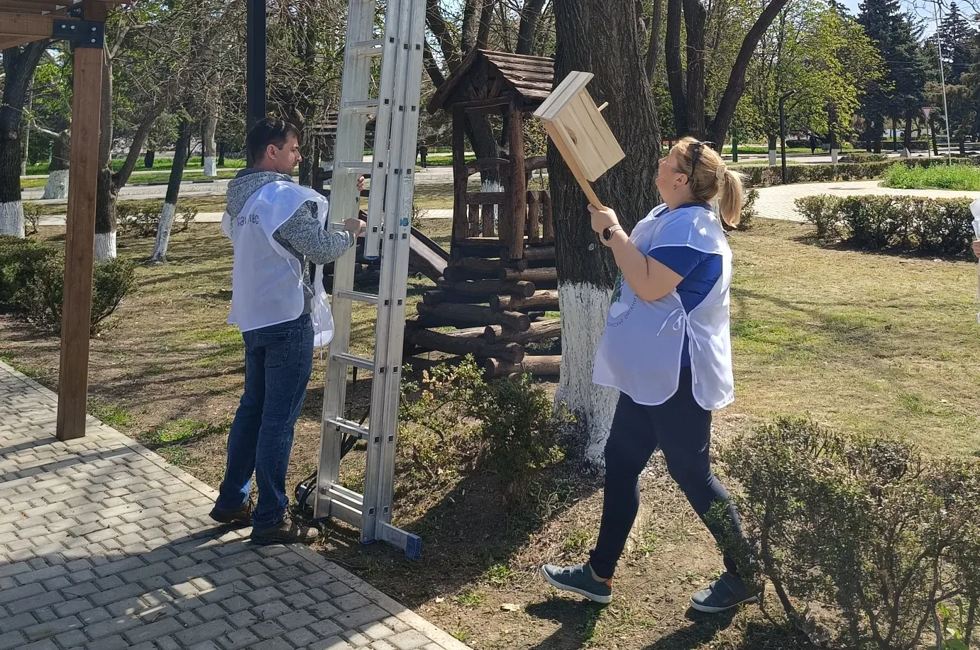 В Центральном парке Чаплинки прошла акция по установке скворечников