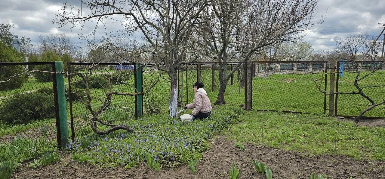 Сотрудники сельской администрации привели в порядок территорию у административного здания: убрали мусор и сухие ветки, подмели дорожки, скосили траву, побелили бордюры и деревья, а также навели порядок в клумбах.