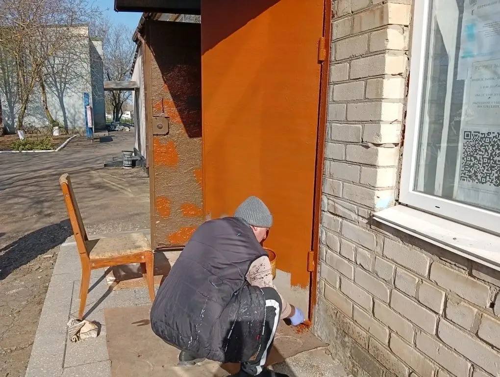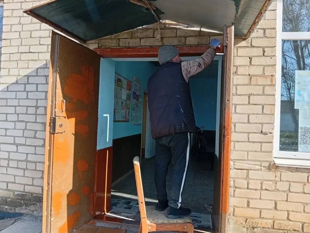 В рамках субботника участники убрали мусор, побелили ограждение и деревья. Также заведующий сельского Дома культуры села Первоконстантиновка покрасил входные двери своего учреждения.