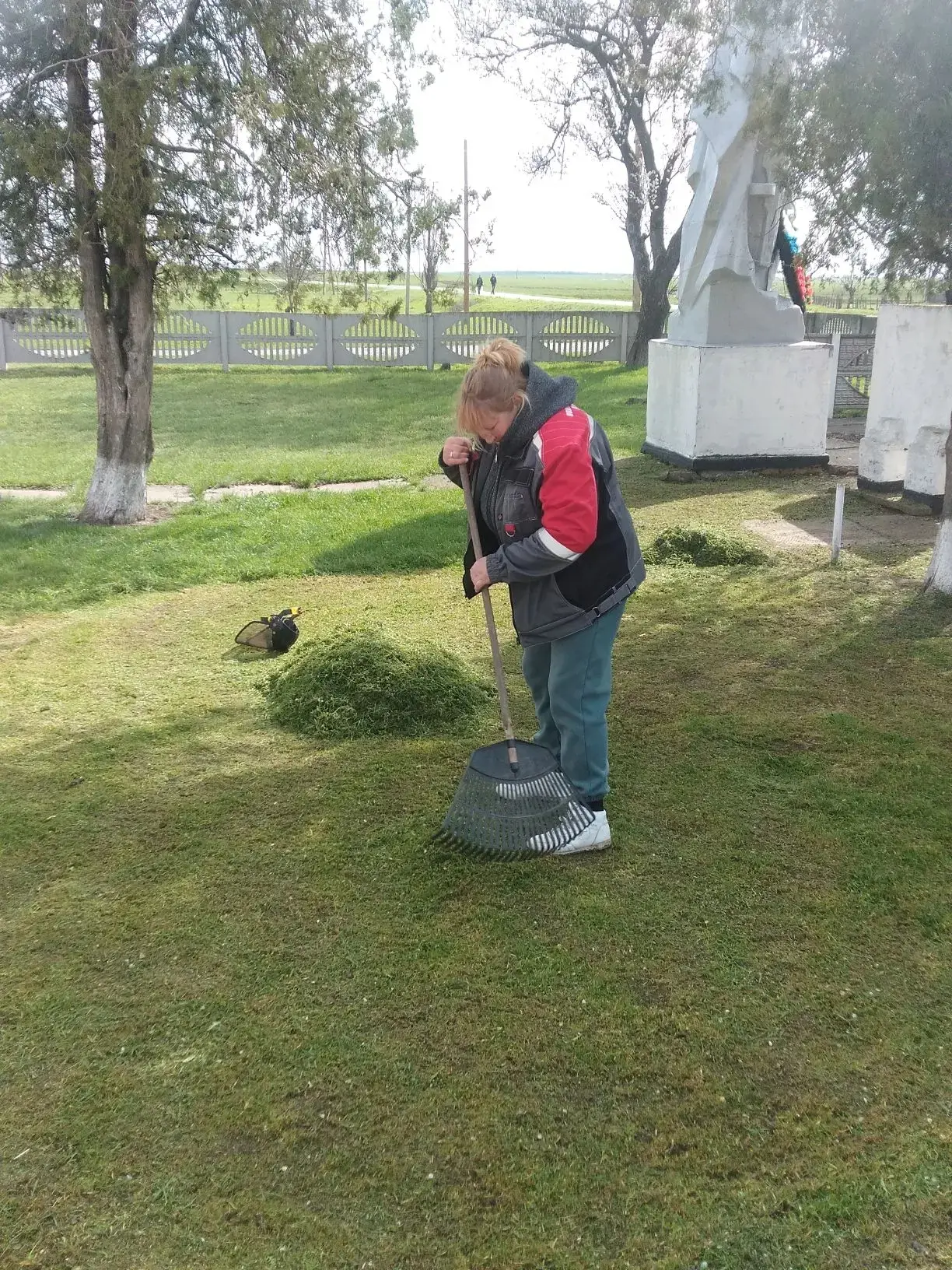 Сотрудники службы подметают дорожки, очищают газоны, а особое внимание уделяют памятникам и мемориалам.