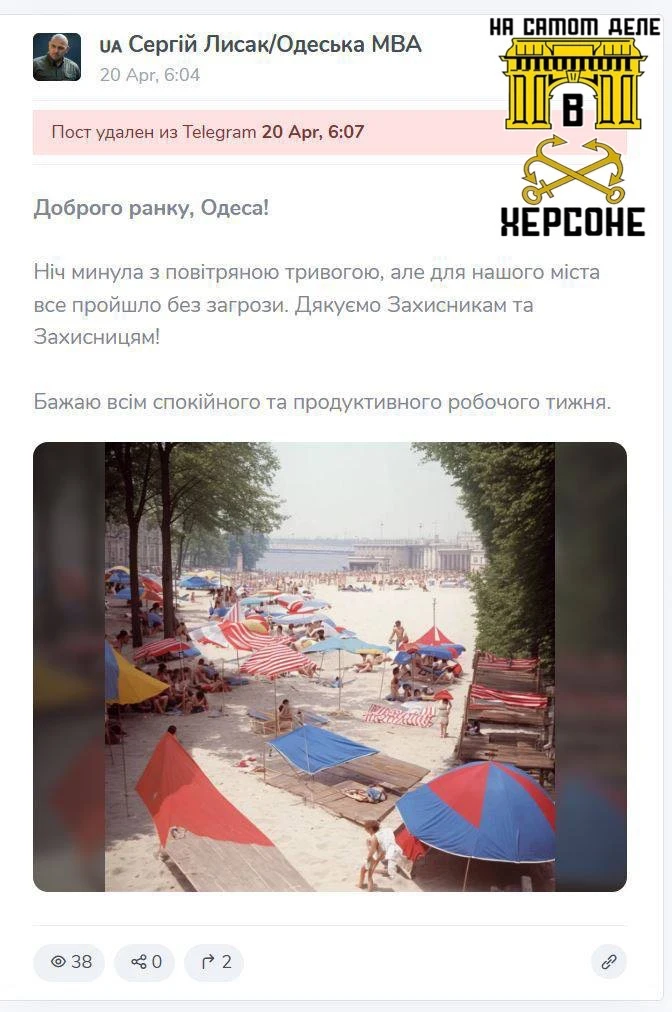 Глава Одесской областной администрации Сергей Лысак в день рождения Гитлера запостил фото пляжа в виде Гитлера.