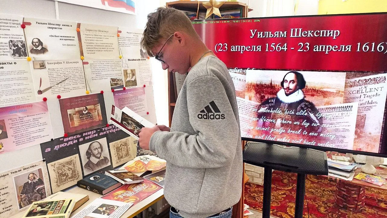 К дню рождения Уильяма Шекспира в Любимовской библиотеке оформлена выставка-досье "Весь мир - театр!"